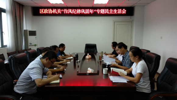 7月27日,区政协机关党组召开“作风纪律巩固年”活动专题民主生活会,会议由区政协秘书长、机关党组书记刘玉国主持。