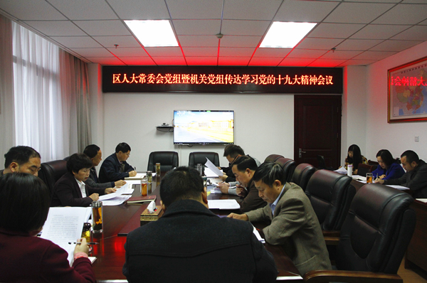 按照中央、省委、市委、区委统一部署要求,11月2日,区人大常委会党组暨机关党组召开会议,专题传达学习党的十九大精神。区人大常委会党组书记、主任梁黎,区人大常委会党组成员、副主任王祝远、田新华出席会议。区人大常委会副主任邝庆林列席会议。