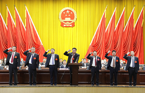 会议举行了宪法宣誓仪式。新当选的区八届人大常委会主任、副主任,区人民政府区长、副区长,区监委主任,区人民法院院长,在与会代表的共同见证下进行了宪法宣誓。