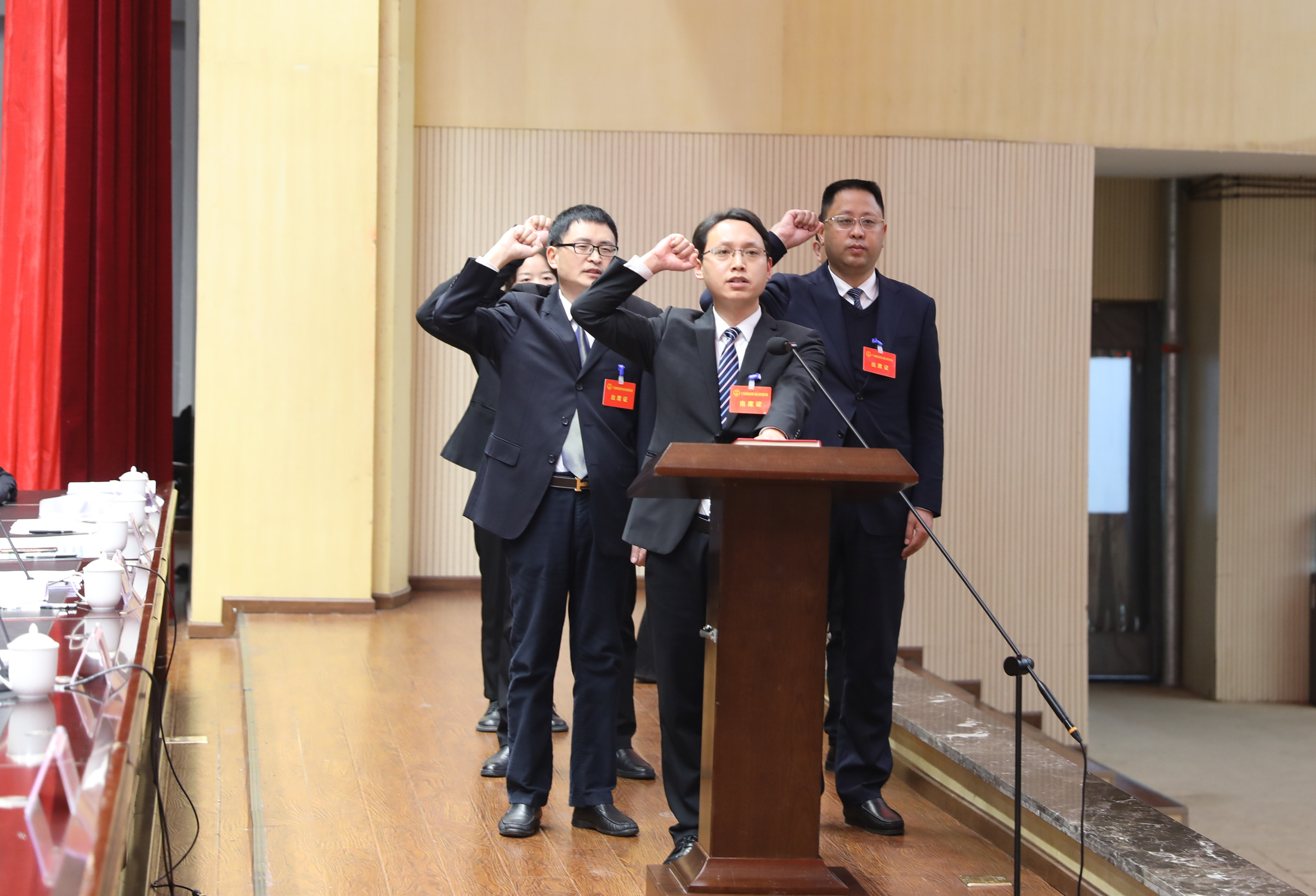 会议举行了宪法宣誓仪式。新当选的区人大常委会委员、区监委主任,通过的区人大法制委员会组成人员,在与会代表的共同见证下,依法进行了宪法宣誓。
