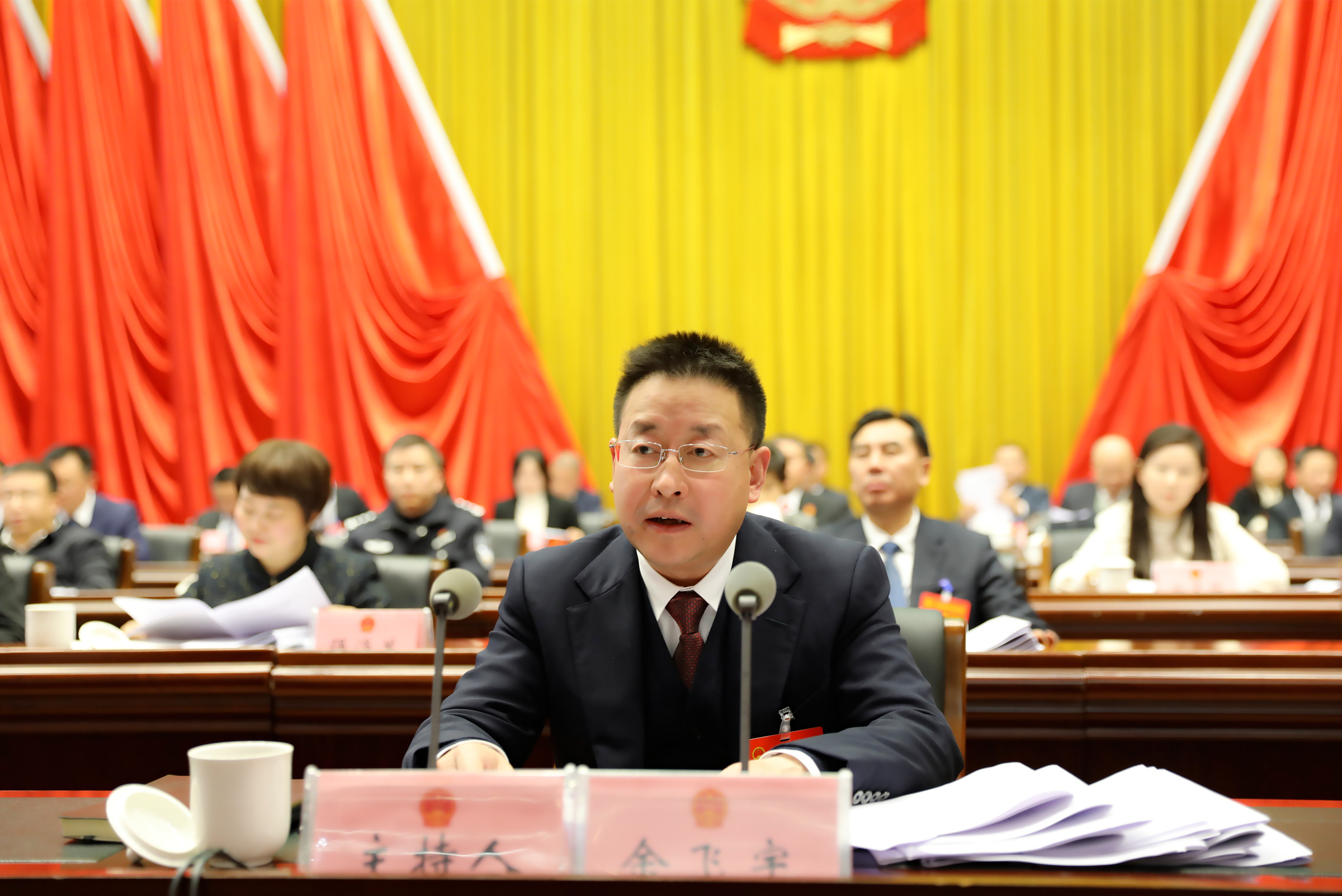 下午3时,余飞宇宣布:广元市朝天区第八届人民代表大会第五次会议开幕。全体起立,奏唱国歌。