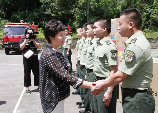 “今天是第92个建军节,我代表区四大班子看望你们,祝你们节日快乐!”在区人武部、区消防大队和驻朝某部,蔡邦银、伏玉琼、梁黎、张晓春与官兵一一握手,为他们送去慰问品,祝他们节日快乐,长期以来为我区经济社会发展、人民群众生命财产安全、社会稳定做出的突出贡献表示感谢。