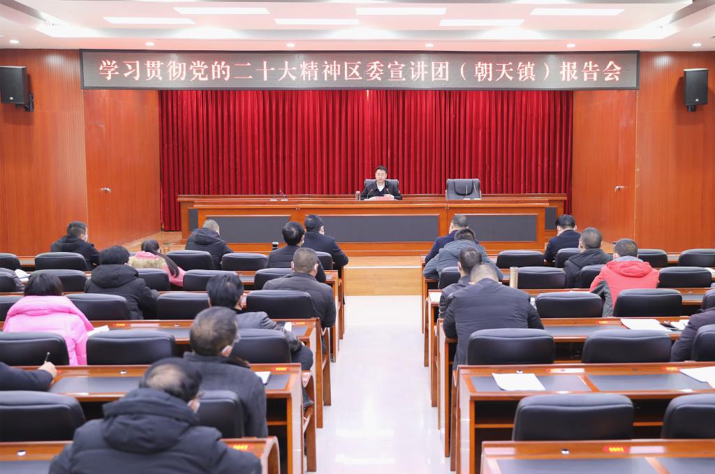 本网讯(王杰)根据区委的统一安排,12月6日,区委书记余飞宇深入朝天镇宣讲党的二十大精神及省委十二届二次全会精神。宣讲会上,余飞宇从“关于党的二十大的主题和主要成果”“关于过去五年的工作和新时代十年的伟大变革”“关于开辟马克思主义中国化时代化新境界”“关于新时代新征程党的中心任务和战略部署”“关于认真推动党的二十大精神落实见效”五个方面深入浅出地向朝天镇镇村干部进行了阐述和解读。他指出,党的二...余飞宇:奋力推动各项事业在新起点上取得新成就