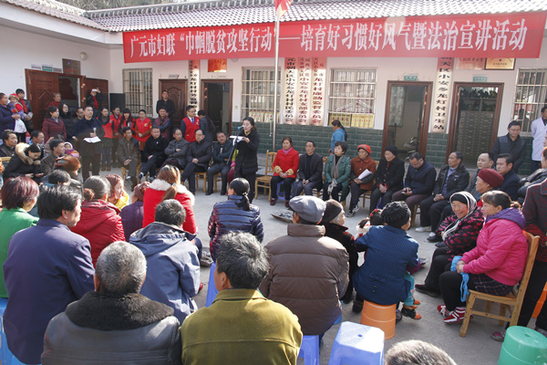 (区妇联小安乡)11月30日,市妇联“巾帼脱贫攻坚行动”——培育好习惯好风气暨法治宣传活动在我区小安乡龙灯村隆重举行。市妇联主席张敏,区人大常委会主任梁黎出席活动。启动仪式上,巾帼志愿者向参会人员发出了“养成好习惯,形成好风气”倡议。龙灯村支书和村民代表做了表态发言。区妇联对小安乡龙灯村的“最美家庭”进行了通报表扬。市委组织部向“农民夜校”授牌并宣布开课。启动仪式结束后,现场开展了“幸福使...广元市“巾帼脱贫攻坚行动”在我区启动