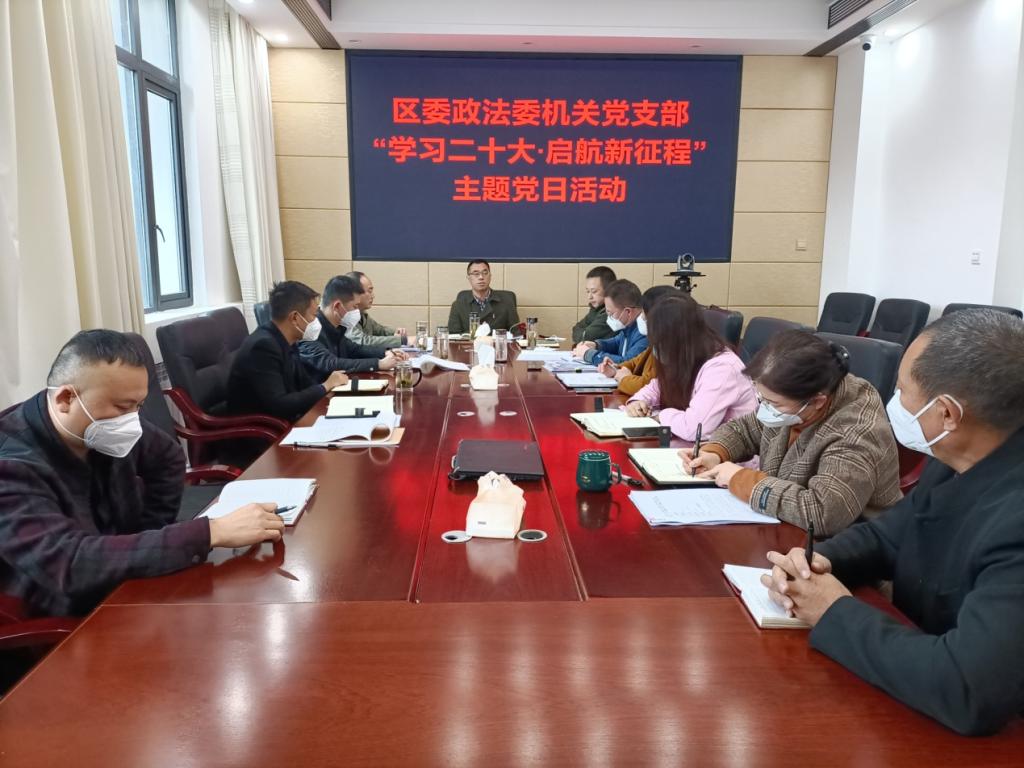 11月25日,区委政法委机关党支部组织开展了“学习二十大·启航新征程”主题党日活动,区委常委、政法委书记、区总工会主席仲满成以普通党员身份参加活动并讲党课,委机关全体党员参加。