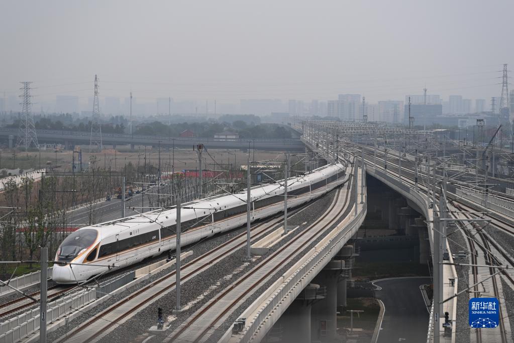 2022年9月22日,合杭高铁湖州至杭州段首趟列车从杭州西站驶出。新华社记者 黄宗治 摄