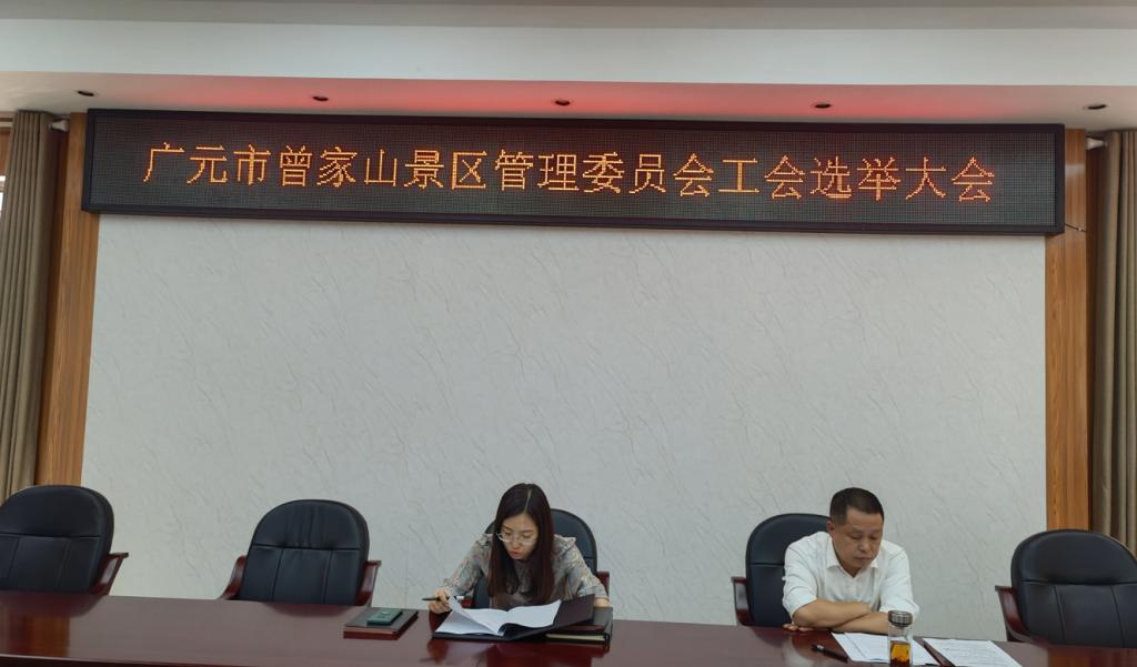 会上,广元市曾家山景区党工委副书记杨波同志宣读了朝天区总工会关于同意成立广元市曾家山景区管理委员会工会的批复文件,按照《工会法》、《工会章程》等有关规定,审议通过了《广元市曾家山景区管理委员会工会选举办法》(草案)及监票人、计票人建议名单。大会选举谯琪为工会主席,罗斌为经费审查委员会主任,何瑞为女工委员会主任。