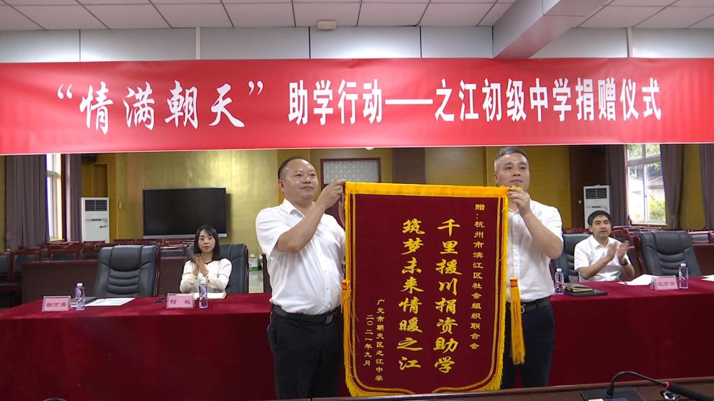 本网讯(唐釦 赖霜)9月15日,我区携手浙江省杭州市滨江区社会组织联合会举行了“情满朝天”助学金网络捐赠仪式。