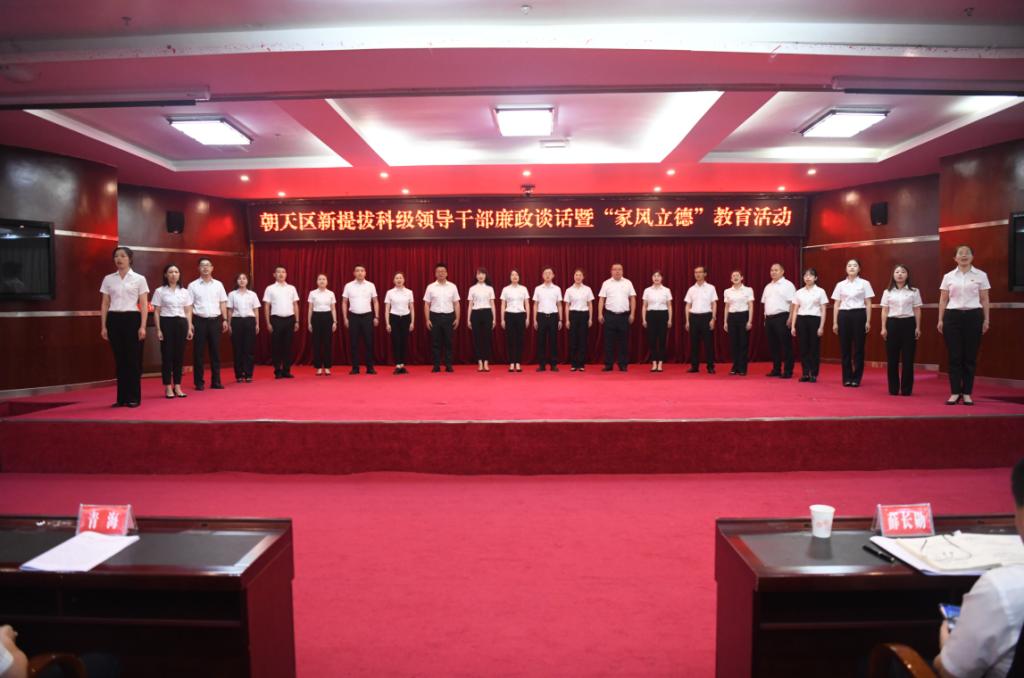 打好“预防针”,拧紧“监督弦”,注入“新动能”。此次活动内容丰富,不仅常规性开展了观看家风题材警示教育片、宣读“家风立德”家庭助廉倡议书、集体签名承诺,新提拔科级领导干部及家属代表还沉浸式演唱了廉洁歌曲、作了廉洁从政和家风传承方面的主题宣讲。