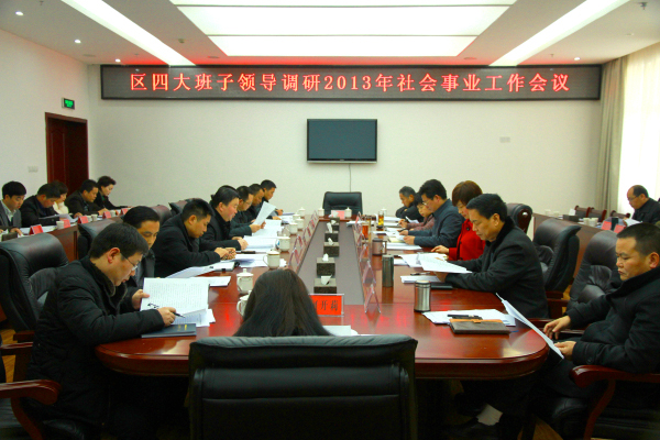 本网讯(谢翀)2月22日下午,区委书记蔡邦银,区委副书记、区长伏玉琼,区人大常委会主任梁黎,区政协主席贾光升等四大班子领导对我区2013年社会事业工作进行专题调研。蔡邦银强调,要以对人民群众高度负责的态度,牢记使命,抢抓机遇,创新实干,推动全区社会事业工作不断迈上新台阶,让广大群众切实享受社会事业发展带来的丰硕成果。