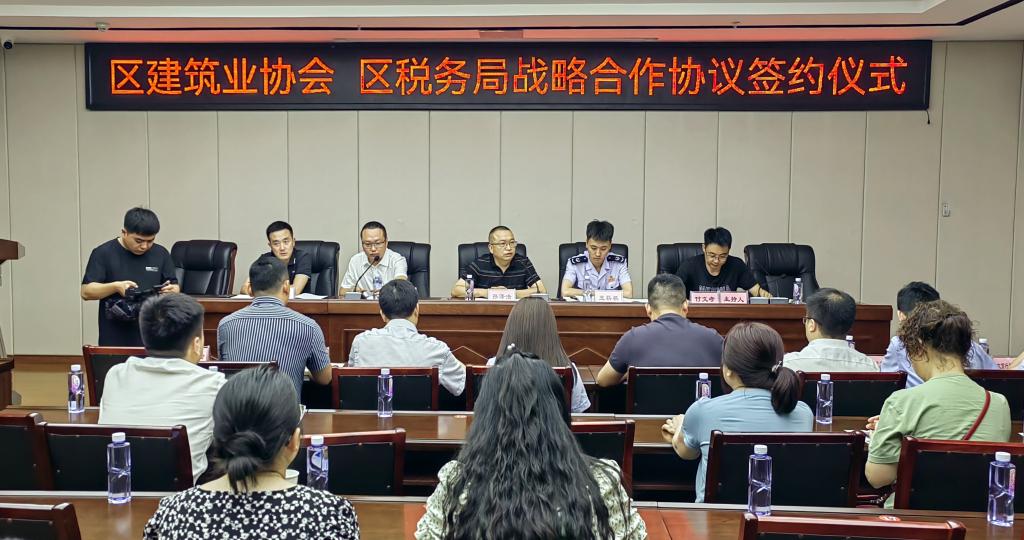 签约仪式前,为帮助建筑企业及时享受相关税收扶持政策,支持建筑业持续健康发展,区税务局、区建筑业协会还举办了税法新政策宣讲会,宣讲了个税、环境保护税等相关税法政策。(唐琬)
