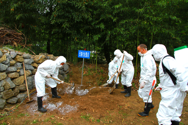 区畜牧食品局组织的应急处置人员将河中死鱼全部打捞上岸后,及时进行无害化处置