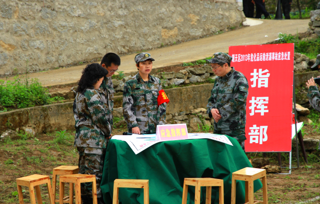 上午九时,区委书记蔡邦银宣布:朝天区2013年防灾救灾演练开始