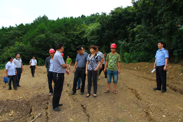 清风村二组地质灾害隐患点位于小峨眉生态森林公园,紧邻建设中的红军文化园。伏玉琼一行认真查看隐患点地质情况,并结合六○四专家意见对隐患点应急处置工作提出具体要求:要把群众生命安全作为第一要务,将“明白卡”、“逃生卡”发到每一位群众手中,通过大力宣传和反复演练,让每一位群众都熟知逃生通道和避险区域;对已经形成的地质裂缝,迅速进行填充,并用塑料薄膜进行覆盖,防止继续扩展延伸;对有滑坡迹象区域、危险区域要立即设立警示标志,进一步明确监测人员,加大监测密度,确保周边群众生命安全。
