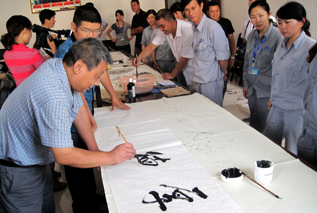 活动现场,书画家们挥毫泼墨,共书写作品50余幅。书法作品内容多为员工们喜欢的名言警句;绘画作品内容多为描绘新农村,水墨写意,淳朴自然。现场员工兴致勃勃,对活动赞不绝口,大家纷纷表示,非常珍惜此次活动的成果,希望此类活动以后经常开展;同时对书画家们莅临一线关注职工业余生活表示深深感谢。