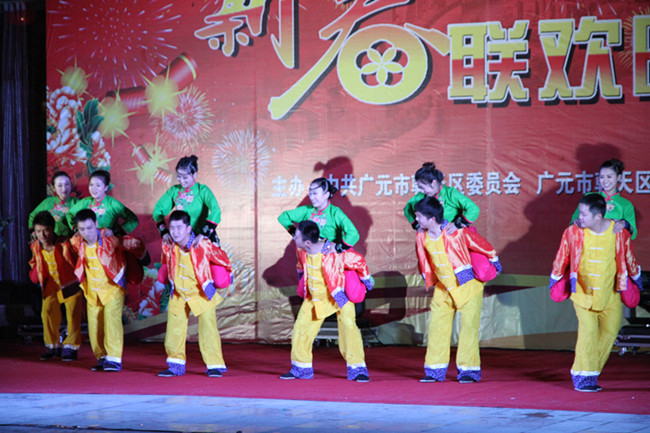 本网讯(记者刘保刚文/图)1月18日晚,朝天区春节文艺联欢晚会在舞蹈《请到朝天逛一圈》中拉开了帷幕:嘉陵江畔乐声阵阵、激情飞扬,舞台上、篝火旁,歌如海、人如潮,全区干部群众欢聚一堂拥抱激情之夜。