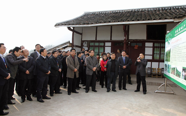 本网讯:12月21日,参加全省林业产业发展现场会的与会代表,在省委常委、省委农工委主任李昌平,市委副书记、市长马华,市委副书记王菲,副市长陈凯的带领下,先后赴我区沙河镇岳家村核桃示范基地、沙河镇三湾核桃采穗圃、朝天镇双河村核桃示范基地、中子现代林业(核桃)示范园区参观考察。