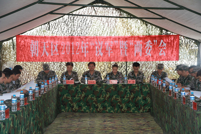 (实习记者  杨春恩)7月28日,朝天区2012年“议军会”暨区委人民武装委员会、区国防动员委员会全体会议召开,研究解决我区国防后备力量建设中的重点难点问题,并形成相关决议。区委书记、区人武部党委第一书记、区“两委会”第一主任蔡邦银主持会议并讲话。区委副书记、区长、区“两委会”主任伏玉琼宣读区委、区政府、区人武部《关于调整区委人民武装委员会暨区国防动员委员会成员的通知》。