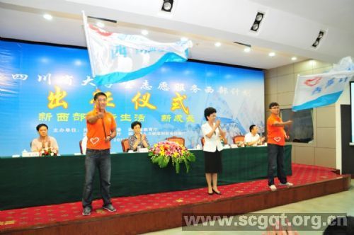 7月25日,2012年四川省大学生志愿服务西部计划出征仪式在成都隆重举行。省委常委李登菊作重要讲话并宣布出征,省政府副省长黄彦蓉为西部计划志愿者代表授旗,团省委书记张彤,省财政厅机关党委书记、党组成员李登全,省人社厅副厅长张光伟,省教育厅学生处处长李孝武等相关单位领导出席仪式。西部计划受援县项目办、西部计划大学生志愿者代表260人参加了出征仪式。出征仪式由团省委副书记江海主持。区委书记蔡邦银代表受援县(区)在仪式上发言。