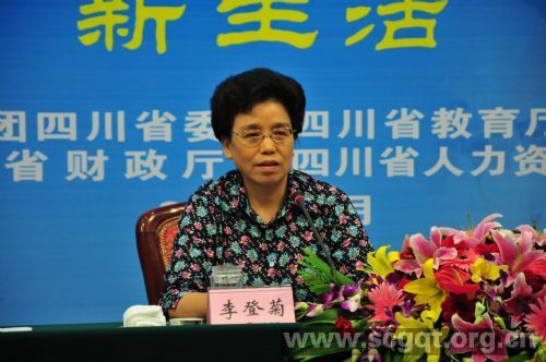 李登菊在出征仪式上作重要讲话,向即将奔赴我省基层一线的西部计划志愿者提了三点希望:一是要志存高远,在勇于吃苦中砥砺品质。要牢记胡锦涛总书记“五个坚持”的殷切期望,志存高远,勇于吃苦耐劳,以苦为乐,化苦为甜,在战胜困难、战胜自我中升华人生境界、砥砺优良品质。二是要脚踏实地,在善于学习中增长才干。要向书本学习,向实践学习,向人民群众学习,真正做到知国情、增阅历、长才干。三是要求扎根基层,在乐于奉献中实现价值。要带头倡导和弘扬“奉献、友爱、互助、进步”的志愿精神,在无私奉献中实现自己的人生价值。她强调,各级党委、政府及各级团组织,要把西部计划志愿者作为我省加强基层工作,推动经济社会发展的一支重要力量,要高度重视、积极支持西部计划工作的组织实施。