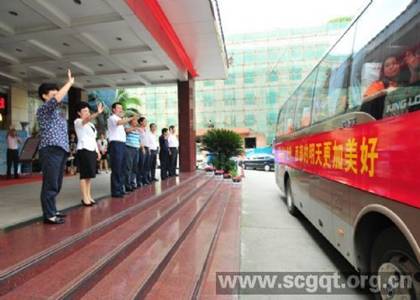 最后,李登菊宣布2012年四川省大学生志愿服务西部计划出征。全体西部计划志愿者积极响应,高呼“奉献青春、服务四川”的口号,带着领导的谆谆教诲和殷切期望,踏着《到西部去》的激昂乐章,统一乘车出发。与会领导挥手为他们送行。