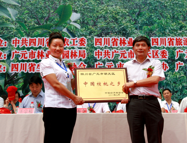 开幕式上,国家林业局向朝天区授“国家重点林木良种基地”牌;中国经济林协会向朝天区授“中国核桃之乡”牌;四川省旅游局代国家旅游局向朝天区授“曾家山国家AAAA级旅游景区”牌。伏玉琼代表朝天区人民政府接牌。