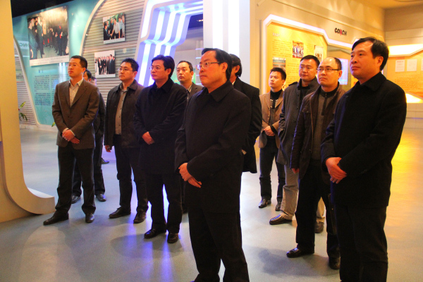 在海螺集团总经理助理丁峰的陪同下,张康明、蔡邦银先后参观了海螺集团总部成就展厅、中控室、物流调度中心,观看了海螺集团30年发展宣传片,详细了解了海螺集团的发展状况及项目扩张投资情况。
