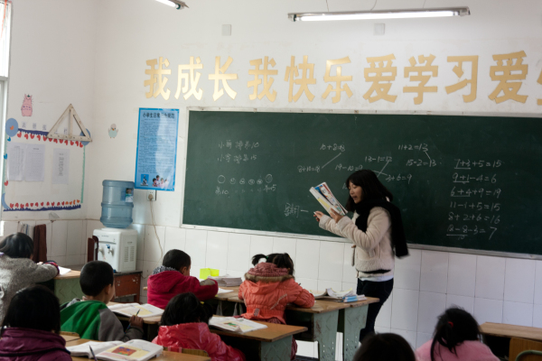 (团区委)“小朋友,你们觉得学校好不好呢。想不想有更多的老师来给你们上课呢?”