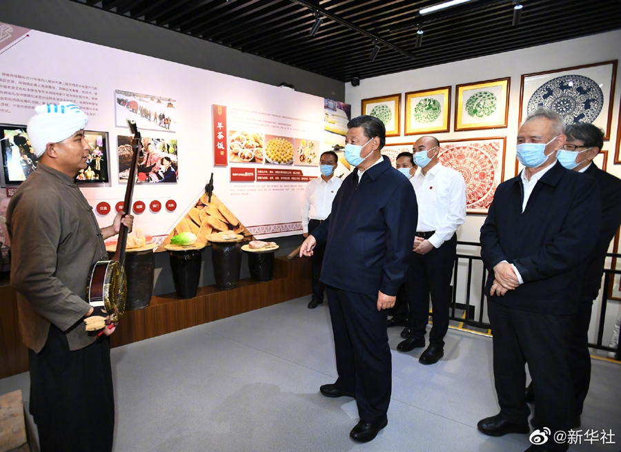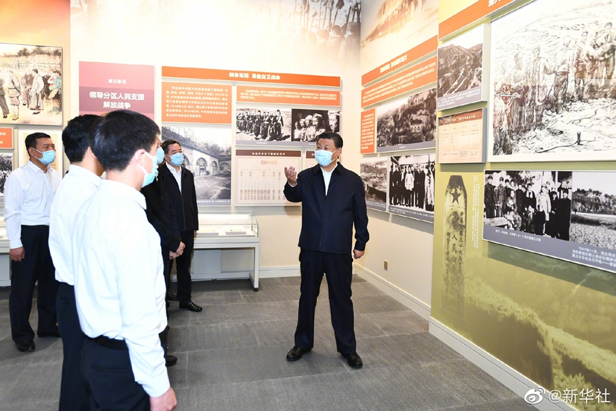 习近平总书记14日在榆林市绥德县考察调研。他先后来到中共绥德地委旧址、绥德实验中学、绥德县非物质文化遗产陈列馆、张家砭镇郝家桥村,围绕弘扬党的光荣传统和优良作风、促进学生全面发展与健康成长、推进传统文化保护与传承、全面推进乡村振兴等实地调研。(文字记者:张晓松、朱基钗;摄影记者:李学仁、谢环驰、燕雁)
