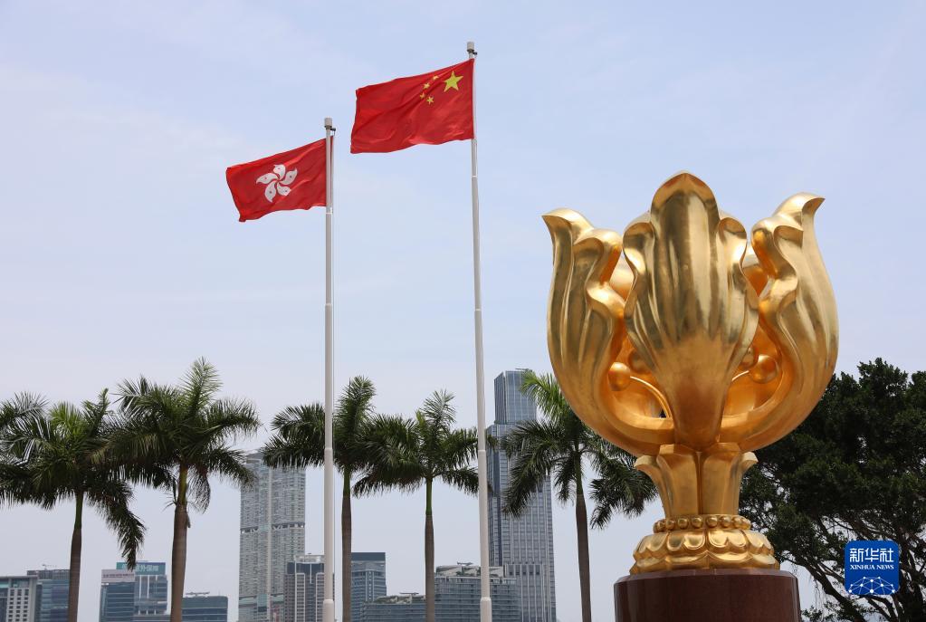 25载春秋可鉴,五星红旗和紫荆花区旗,在香江之滨猎猎飘扬。25载岁月洗礼,中央政府赠送的金紫荆花雕塑沉静祥和、熠熠生辉。