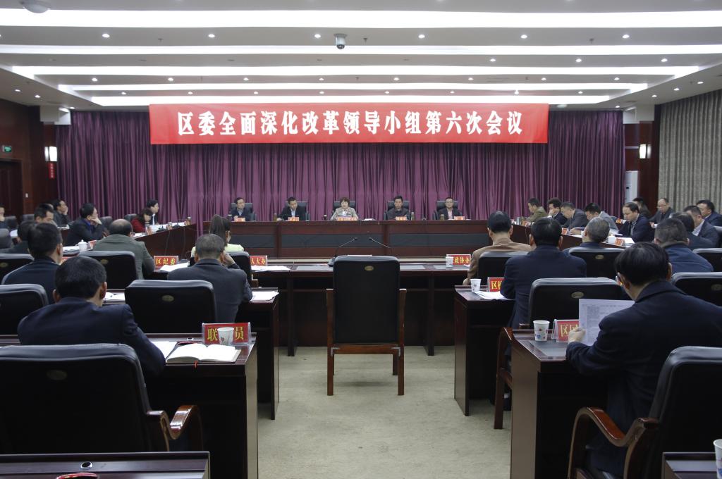 本网讯(黄凤来)10月29日上午,区委全面深化改革领导小组第六次会议召开。区委副书记、区长、区委全面深化改革领导小组副组长伏玉琼主持会议并讲话,区政协主席、区委全面深化改革领导小组副组长张晓春,区委副书记、区委全面深化改革领导小组副组长、改革办主任罗凌云参加会议。