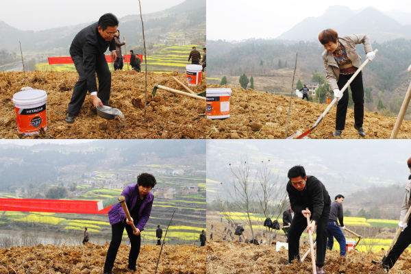 本网讯(杨春恩)人勤春来早、播绿正当时。3月12日是第37个植树节,上午,区委书记蔡邦银,区委副书记、区长伏玉琼,区人大常委会主任梁黎,区政协主席张晓春等在家的四大班子领导率全区广大党员干部,深入朝天镇金堆村四组,带头开展春季植树活动。