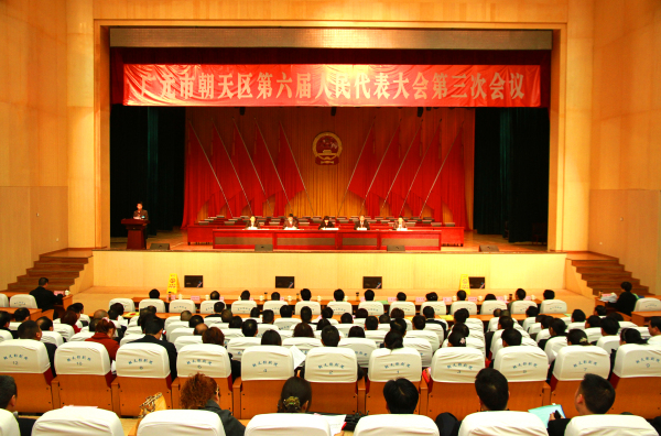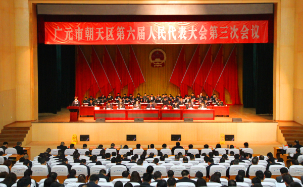 3月5日上午,朝天区影剧院气氛热烈而庄重。熠熠生辉的国徽悬挂在主席台帷幕中央,在灯光的辉映下格外醒目;整个会场洋溢着团结奋进、求真务实的浓厚氛围。广元市朝天区第六届人民代表大会第三次会议在这里隆重开幕。